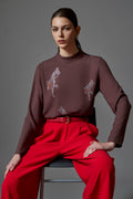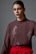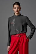 Μπλούζα από χειμωνιάτικο viscose 100% με απλικέ μεταλικά άλογα