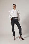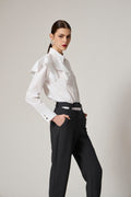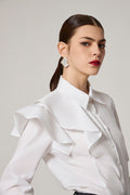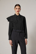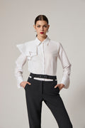 Πουκάμισο ποπλίνα με ιδιαίτερο σχεδιασμό που δημιουργεί βολάν στον ένα ώμο.